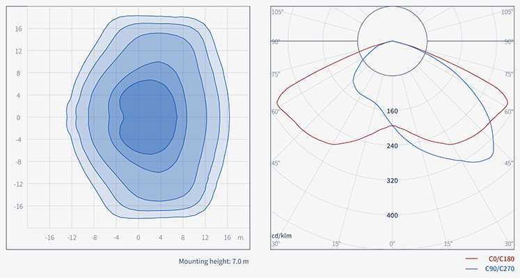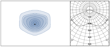 The examples show graphics generated on demand by the Viso Photometric API. Before using the API, this client used static bitmaps on their webpages. These examples demonstrate how static graphics can be replaced with on-demand graphics built using only a design template and an IES or LDT file.